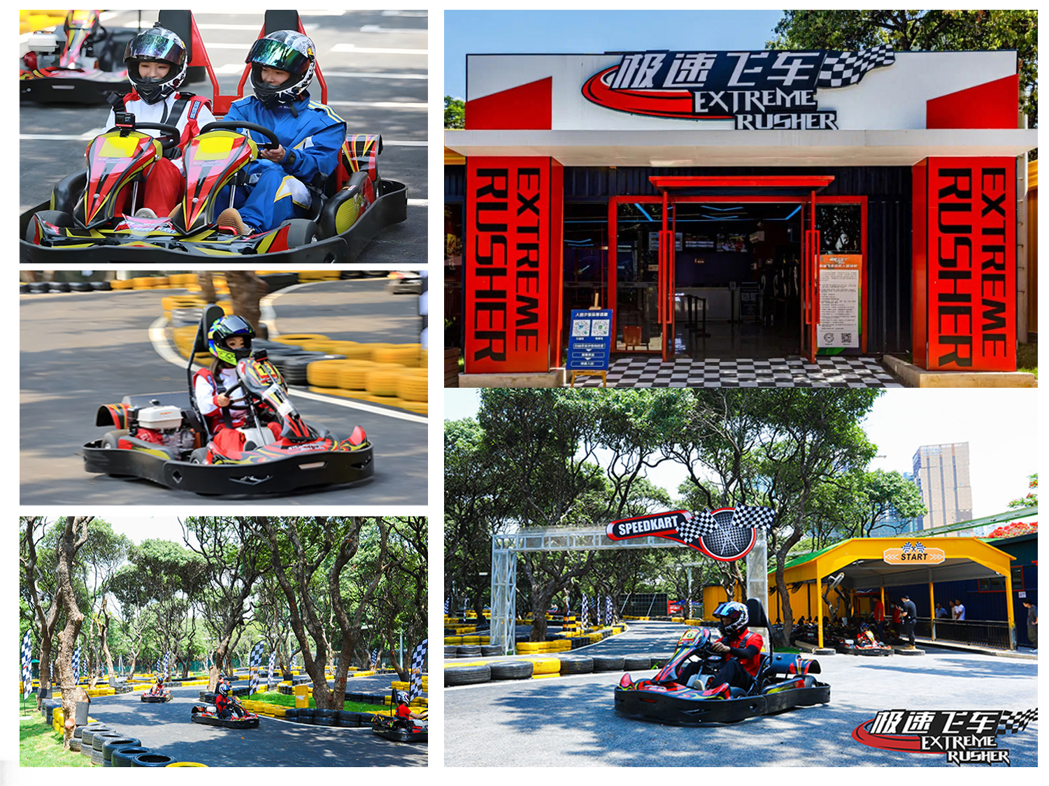縂占地面積約8000平方米,賽道全場500米,賽道寬6米,是國内第一個叢林卡丁車項目